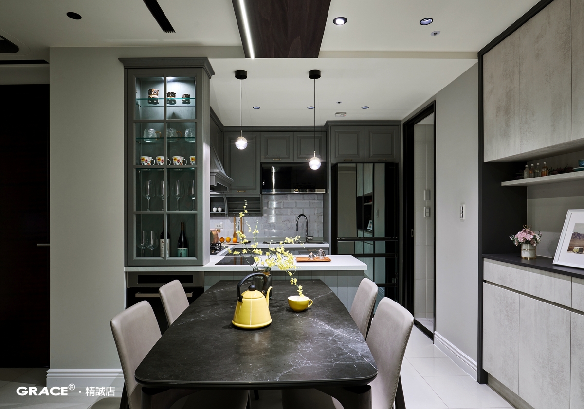 上一個案例 下一個案例 惠宇樂觀-林公館靜謐而美好 打破過於寂靜的氛圍,質感中帶著柔和的神秘,提升了空間的輕奢感。 像是賦予櫥櫃一層朦朧的光,高檔大氣,壁面的磁磚搭配上溫潤如玉般材質,靜謐而美好。 上一個案例 下一個案例
