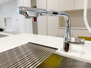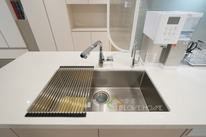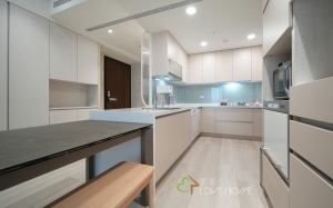 以奶茶色營造溫雅氛圍,並透過中島設計提升場域機能