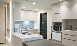 整體空間以柔和奶茶色系為主軸,搭配淺木地坪與俐落線條,呈現乾淨純粹的設計語彙。 廚房規劃以中島結合餐桌,提升場域機能的靈活性,同時串聯料理與用餐動線。 櫃體以隱藏式收納手法消弭凌亂感,讓視覺保持純淨一致。 在光影的映照下,展現溫潤卻不失質感的現代居家氛圍。
