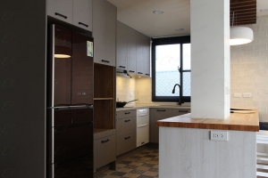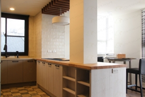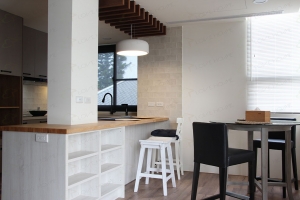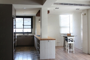 輕工業風的彈性變化,配色上也較不這麼的「重」跟「冷」,搭配吧檯實木的溫暖也多了幾分清新感,非常適合