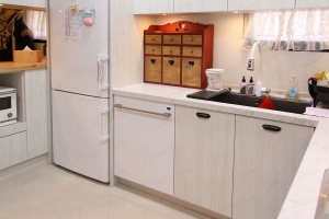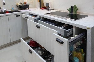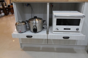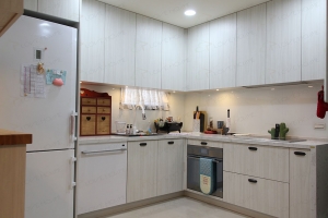 自然簡約搭配白系木紋裡的線條,呈現空間廚房美學