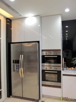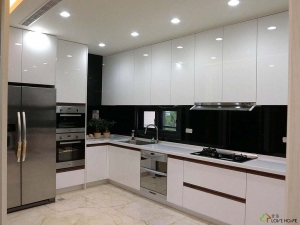 簡約混搭把實木把手元素置入門板上,運用把手線條勾勒出美學的韻味,運用烤玻配色大器呈現